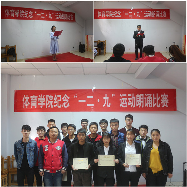 为缅怀历史,继承和弘扬爱国主义精神,11月14日,体育学院在体育学院学生活动中心举办了纪念“一二·九”运动朗诵比赛。