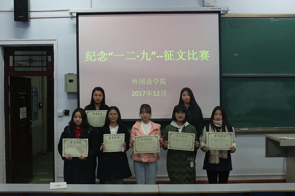 为纪念一二•九运动82周年,以实际行动深入学习贯彻党的十九大和习近平总书记系列重要讲话精神,积极培育和践行社会主义核心价值观,外国语学院举办“传承革命精神 弘扬青春能量”主题征文比赛。