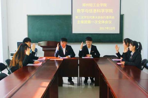 会后,在东一楼310会议室,召开了第二届郑州轻工业学院数学与信息科学学院学生会主席团第一次会议,选举产生了第二届学生会主席。会议同时对学生会接下来的工作进行了全面部署。