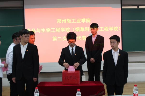 会上,各位代表分别审议并通过了《郑州轻工业学院食品与生物工程学院(烟草科学与工程学院)学生会工作报告》以及《郑州轻工业学院食品与生物工程学院(烟草科学与工程学院)学生代表大会换届选举办法(草案)》。大会选举产生新一届郑州轻工业学院食品与生物工程学院(烟草科学与工程学院)学生会主席团成员。