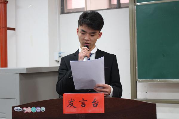 随后,学院分团委书记王楠老师作大会总结发言。王老师充分肯定了上一届学生会在各项工作中取得的成绩,对学生会全体成员的辛苦付出表示感谢,并对新一届学生会的工作提出了四点希望:一是牢固树立大局意识,围绕学校和学院发展的中心工作,夯实岗位职责;二是坚持“从学生中来,到学生中去,为学生服务”的宗旨,以学生为本做好各项工作;三是因时而进,结合学生工作的新形势新特点,不断创新发展思路,开创学生工作新局面;四是内强素质,外塑形象,不断加强内涵建设,在各个方面起到模范带头作用。