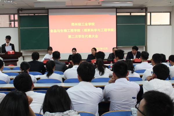 2017年12月22日下午,郑州轻工业学院食品与生物工程学院(烟草科学与工程学院)第二次学生代表大会在科学校区二教楼816隆重召开。学院副院长景建洲、分团委书记王楠、辅导员张书铭和104名学生代表参加了此次大会。