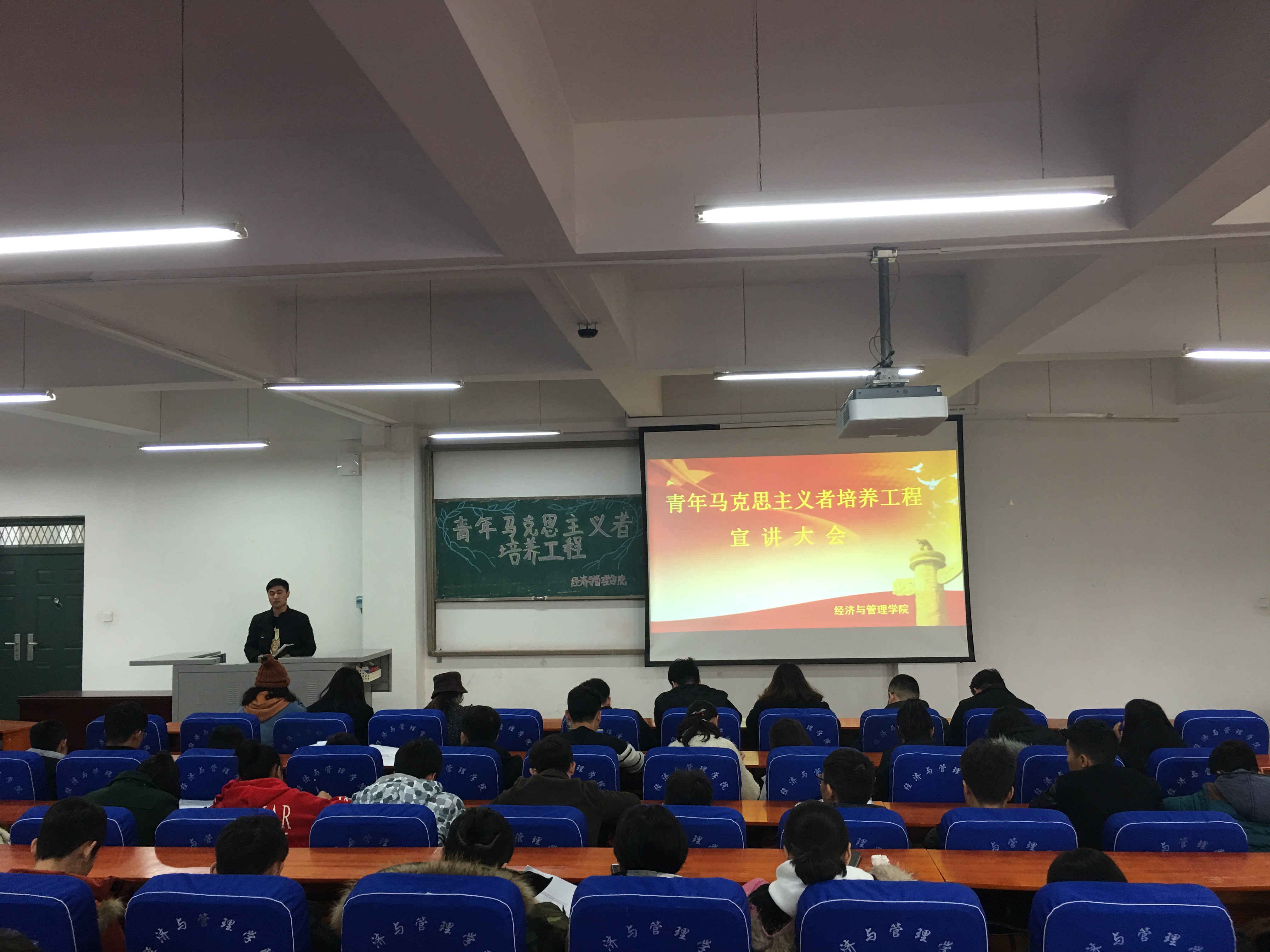 为引导我院学生了解国家发展历程,学习马克思主义中国化的最新成果,提高他们的思想政治素质、创新能力、实践能力,经济与管理学院于2017年12月27日12:30在经管楼211举办“青年马克思主义者培养工程”宣讲大会。我院全体学生干部参加了此次活动。