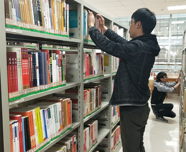 志愿者们在图书馆进行的主要是图书整理方面的工作,旨在为读者提供一个温馨、舒适的阅读环境。在图书馆老师的指导下,同学们尽快熟悉了工作内容,并有条不紊地开始了志愿活动。一位同学负责一块区域,将书架上的图书进行归类整理和上架工作。活动过程中,大家分工明确,配合默契,一切都进行的井然有序。经过两个多小时的劳动,图书摆放的整齐有序,环境温馨整洁,为同学们提供了一个清新舒适的学习环境。