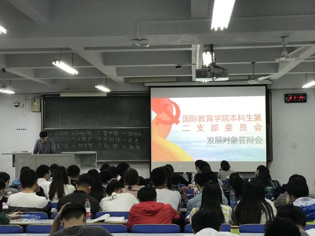为促进党建工作标准化建设,切实提高学生党员发展质量,国际教育学院各学生党支部于3月27日至3月29日分别召开了各支部2017-2018学年第二学期党员发展对象候选人选演讲答辩会,各学生支部书记、全体辅导员老师、学生党员代表和入党积极分子学生代表参加了本期的答辩会。