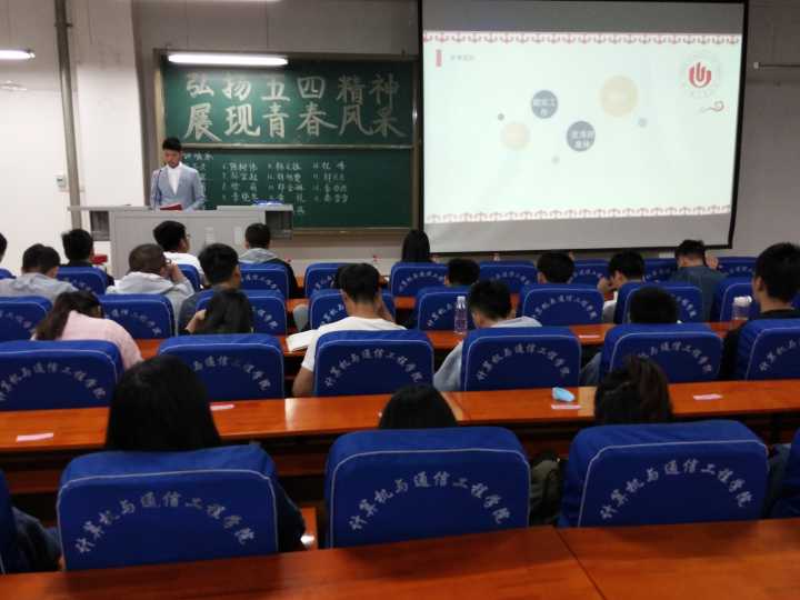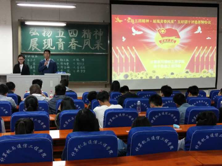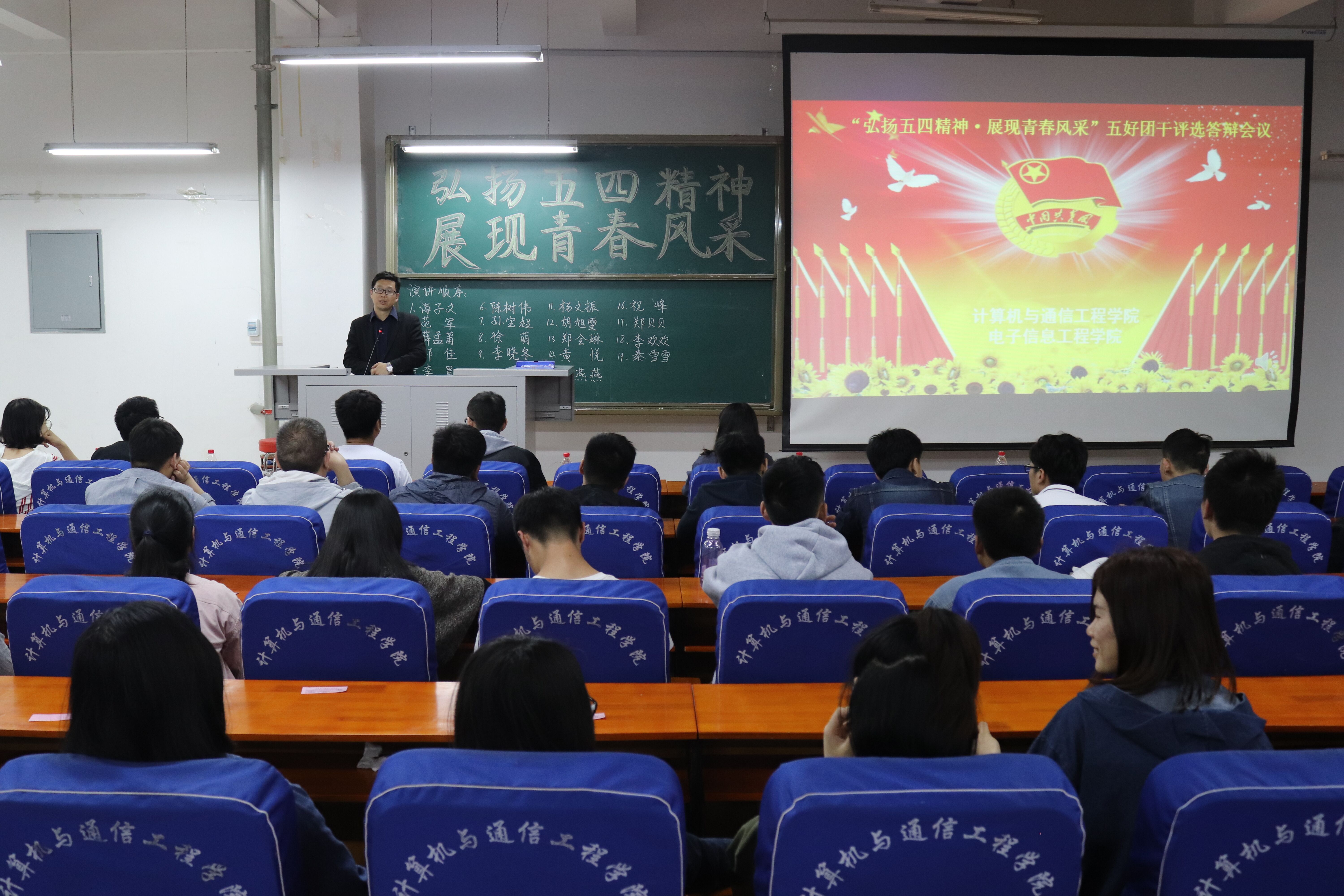 为“弘扬五四精神,展现青春风采“,4月11日晚上19:00,计算机与通信工程学院(电子信息工程学院)在计算机楼217、118举办“正学风 聚能量”学风建设之“弘扬五四精神,展现青春风采”优秀团员、优秀团干、先进团支部评选演讲答辩会。学院分团委书记沈高峰、学工办主任司丽娜、专兼职辅导员以及各团支部团员代表500余人参加了此次活动。