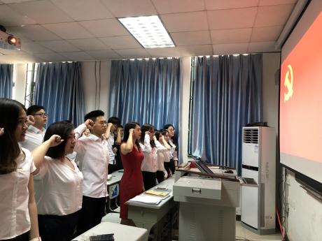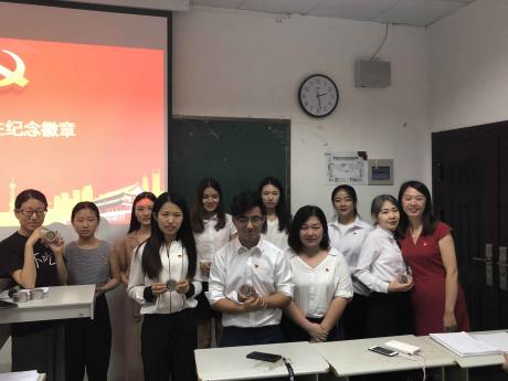 会议在庄严的国歌声中开始。会议第一项进行了佩戴党员徽章仪式,支部书记和党员代表为毕业生党员一一佩戴了党员徽章;会议第二项由党支部书记陈璐老师为全体党员上主题为“心中有党,肩上有责”的毕业生党课。通过讲述“中国青年五四奖章”获得者李娟的感人经历、90后最美女博士刘明侦的奉献故事、投笔从戎的北大学生宋玺的励志事迹,她勉励毕业生党员牢记党员身份,坚定信念,牢记宗旨,发奋学习,铭记嘱托,在平凡的工作岗位上做出不平凡的业绩。希望广大毕业生党员牢记习近平总书记的殷切期盼,努力做爱国、励志、求真、力行的新时代青年。会议第三项向毕业生党员赠送毕业纪念徽章,为毕业生留下美好的母校回忆。最后,全体党员面对党旗郑重宣誓,重温入党誓词。毕业生党员纷纷表示,离校前能够再上一次党课,再重温一次入党誓词,感到沉甸甸的责任与使命。