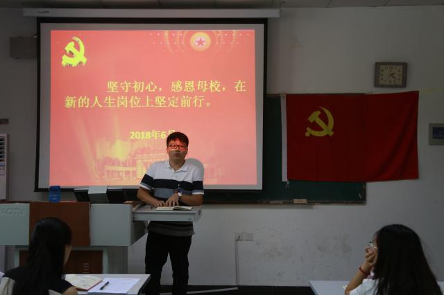 活动中,优秀毕业生党员代表进行大学生涯经验分享,为学弟学妹们传授关于就业、考研、出国求学的经验,传承优良传统和良好学风,激励低年级同学努力奋发成才;开展寄语母校、学弟学妹活动,用一句句充满温馨和鼓励的话语坚定了在校学生的信念,让他们对未来的大学生活更加信心满怀:“要有远大的理想,强大的目标,同时也要做好计划,定好小目标,从而完成我们的理想和目标”;“ 要感谢大学,在大学里犯错并不可怕,这是一个容错、纠错锻炼自己的地方,他锻炼了我们更好提供服务的本领,在错误面前我们要勇于担当和改正,更好的提升和完善自我。”引导毕业生党员们在即将从“学校人”向“社会人”转变的同时,坚定理想信念,勇于树标杆、作表率:“不论时间、地点、环境怎样改变,都不应忘了党员的身份,不要忘记为何出发,面对成绩、利益不骄不躁”;“希望能一直保持一颗赤子之心,牢记党章,坚决抵制社会利益和权利的诱惑,发挥党员的模范先锋作用,在新的起点开启新的旅程。”
