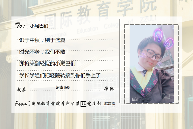 难忘母校踏征程,薪火相传共筑梦,又是一年毕业季,又是一年离别时。近日,国际教育学院本科生第一、四党支部陆续开展毕业生党员主题党日活动。