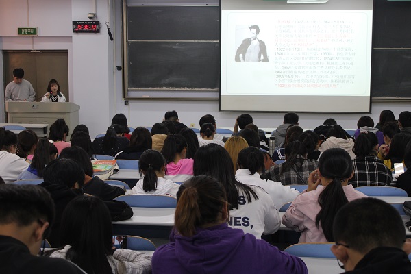 溯往昔,心感于情。故事是对人类自身历史的一种记忆,一段《愚公移山》视频引发同学们对“下定决心,不怕牺牲,排除万难”的思考。思当下,情融于行。担当精神随时代发展不断注入新的生命力,“七彩梦”支教队赵阳同学分享了她赴平顶山开展为期一个月支教活动的经历,号召同学们学习“艰苦奋斗、迎难而上、无私奉献”的焦裕禄精神,勉励大家争做时代模范,勇当历史使命。观未来,行成于思。朝鲜语17-1班高百达、田佳悦等3名同学分别介绍了自己国庆假期参观红旗渠的感受,“始于悲壮,终于辉煌”的人工天河红旗渠故事震撼着在场学生。结合自己的学习生活和社会实践,同学们阐述了自己对红旗渠精神的理解,纷纷表示要“立大志,干在实处,做一名有担当的时代有为青年!”