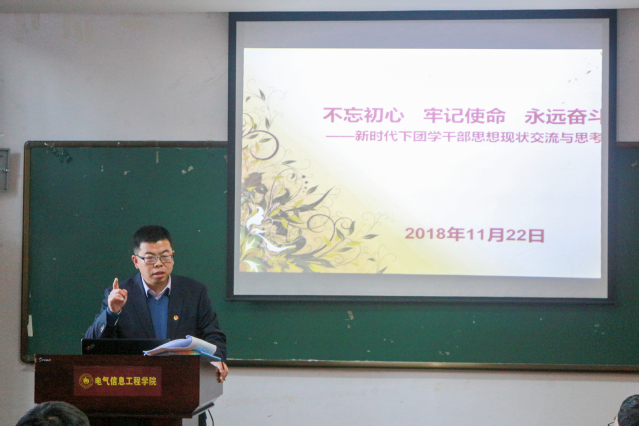 为深入贯彻落实习近平新时代中国特色社会主义思想和党的十九大精神,贯彻落实全国、全省高校思想政治工作会议精神和《中长期青年发展规划(2016—2025年)》有关要求,按照学校团委统一部署,电气信息工程学院2018年团课培训于11月22日下午15:30举办开班仪式。校团委书记葛勋老师,副书记景志勇老师,学院党总支副书记宋文军老师出席仪式。仪式由分团委书记许海龙主持。