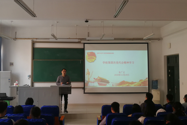 为学习好、宣传好、贯彻好我校第四次党代会精神,使广大学生了解学校发展成果,明确学校下一阶段的发展目标,为早日建成高水平轻工业大学而努力奋斗,材料与化学工程学院于11月29日中午12:20在化工楼218开展学习“学校第四次党代会精神”主题团课,团课由学院分团委书记朱广正老师主讲,学院本期团校学员参加了本次团课。