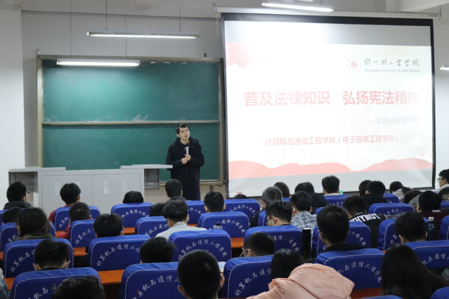为深入贯彻党的十九大精神和全国教育大会精神,学习宪法知识,弘扬宪法精神,建设良好法治校园环境,计算机与通信工程学院(电子信息工程学院)于12月4日,第5个全国法制宣传日到来之际,组织开展主题为“尊崇宪法、学习宪法、遵守宪法、维护宪法、运用宪法”普法教育活动。