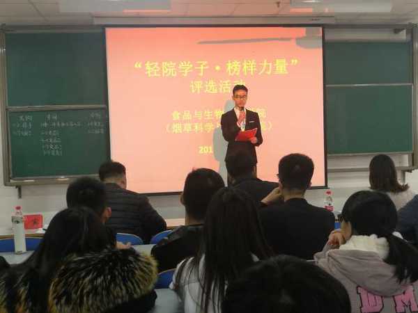 为充分发挥大学生榜样作用,加强青年学生榜样典型的选树、挖掘、提炼和培育工作,食品与生物工程学院(烟草科学与工程学院)于11月28日下午在二教楼812、816教室开展了“轻院学子,榜样力量”的评选活动。我院分团委、学工办辅导员老师和各年级榜样力量候选人、2018级学生代表参加了本次评选活动。
