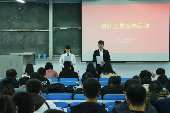 为树立优秀学生典范,引导和激励广大学生向身边的榜样学习, 12月3日晚19:00,数学与信息科学学院于东一楼218教室举行了以“榜样力量,照亮初心”为主题的报告会,辅导员张智勤老师、2017级及2018级部分学生参加了本次活动。