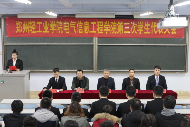 2018年12月06日,电气信息工程学院第三次学生代表大会在教三楼804隆重召开。电气信息工程学院党总支书记高建奇老师、党总支副书记宋文军老师、分团委书记许海龙老师、校学生会主席段子文及第三十八届学生会主席团成员、全体学生代表参加大会。