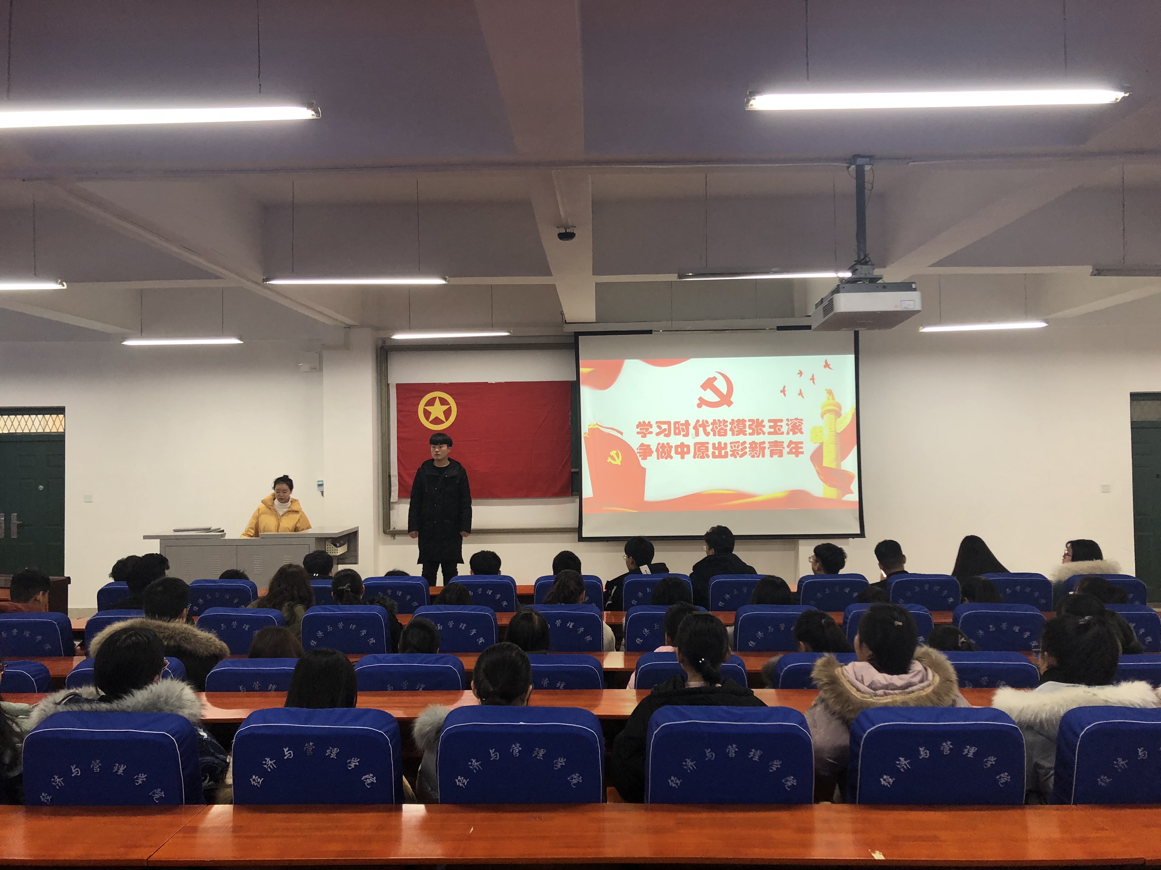 为了贯彻落实学习先进模范张玉滚同志的美好品质,加强学生对社会主义核心价值观的深刻认识,经济与管理学院于12月14日下午14:30分在经管楼211举办以“学习时代楷模张玉滚,争做中原出彩新青年”为主题的研讨会。工商管理1802班全体学生参加了此次研讨会。