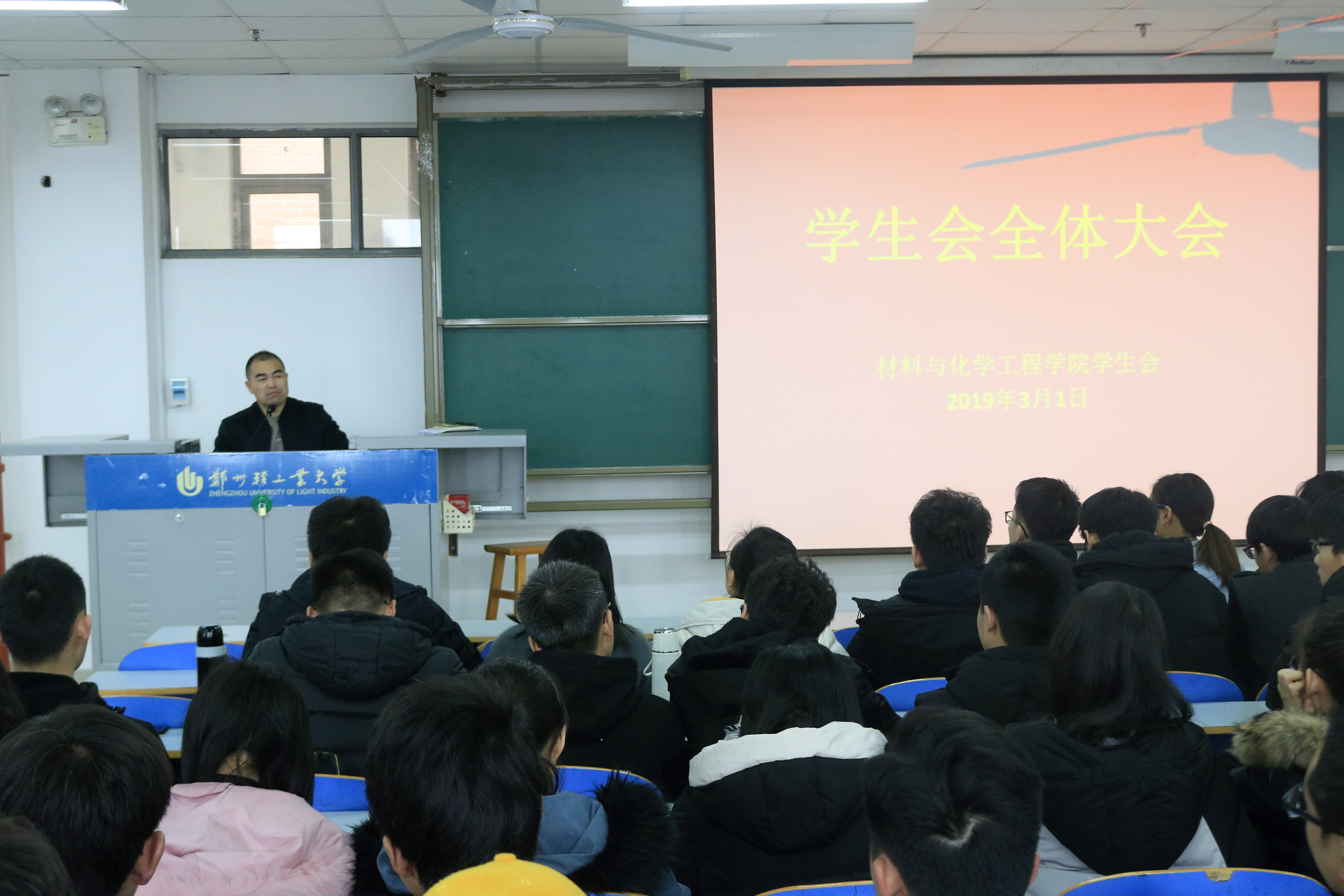 3月1日中午,材料与化学工程学院学生会新学期第一次全体大会于二教楼916室召开。学院党总支副书记宋德涛老师、分团委书记朱广正老师以及学生会全体成员参加了本次大会。
