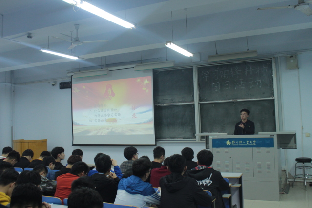 活动开始,团干代表首先以PPT的形式分别向大家介绍了雷锋的主要经历,英雄事迹和经典语录,并透彻地为同学们讲解了雷锋精神的含义和实质,将雷锋神圣而伟大的形象镌刻在同学们心中。接着支部团员纷纷上台分享自己的收获,台下的同学们认真聆听、细心观看,表示要以雷锋为学习榜样,努力将雷锋精神实践到现实生活中。
