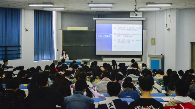 为学习贯彻“两会”精神,强化团员意识,坚定理想信念,增强政治定力,国际教育学院于3月13日在教三楼203举办以“铭记于心,付之于行”为主题的两会精神学习活动,学院各年级180余名团学干部代表参加了此次活动。
