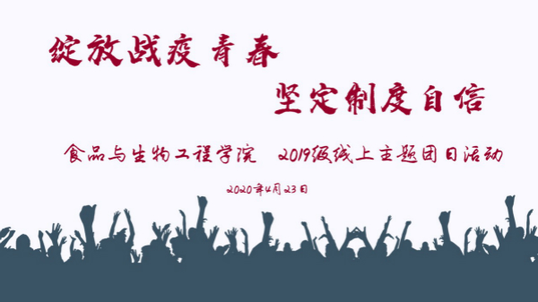 为进一步弘扬五四精神,引导广大团员肩负时代使命,彰显青年担当,2020年4月23日下午,食品与生物工程学院(烟草科学与工程学院)组织2019级各班团支部开展“绽放战疫青春·坚定制度自信”线上主题团日活动。