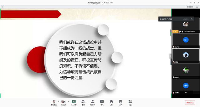 活动中,各班级团支部通过QQ群、腾讯会议、钉钉等平台,以观看视频、PPT分享、线上研讨等方式开展学习。各班级或是重读习近平总书记给北京大学援鄂医疗队全体“90后”党员的回信,或是观看河南青年讲师团成员网络宣讲《战“疫”烽火,点燃青春赞歌》主题团课,或是回顾党团结带领全国人民打赢疫情防控阻击战的突出成效,或是分享身边疫情防控志愿服务的先进事迹。同学们纷纷表示,2020年是全面建成小康社会的收官之年,站在两个100年奋斗目标的历史交汇点上,身为90后、00后的团员青年应当用实际行动展示当代青年蓬勃向上的精神面貌,展现当代青年捍卫青春中国之姿态,践行为人民服务的初心和使命。