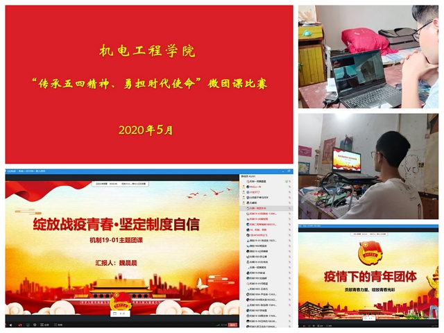 为弘扬五四精神,绽放青春力量,5月4日下午,机电工程学院开展“传承五四精神,勇担时代使命”线上微团课比赛,机电工程学院分团委书记孔馨雨老师、各班级团干和部分团员参加了本次活动。