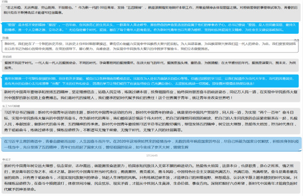 焦作市武陟县中水寨村马明杰等10名大学生,在2020年初新冠肺炎疫情防控斗争中,积极响应习近平总书记和党中央号召,利用寒假返乡之际,主动报名、投身所在乡村的疫情防控和脱贫攻坚工作,以自己所学知识和实际行动回报家乡父老。我院各团支部组织团员青年认真学习了习近平总书记对新时代青年的寄语及焦作青年优秀团体的先进事迹,大家深有感触,积极展开了线上讨论。同学们纷纷表示要牢牢记住习近平总书记对当代青年的期望和嘱托,以焦作优秀青年团体为榜样,学习他们不畏艰险,冲锋在前的担当精神,传承和发扬五四精神,坚定理想信念,站稳人民立场,练就过硬本领,投身强国建业。