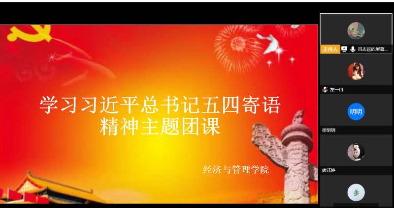 为引导我院广大团员青年继承和发扬五四精神,立足学习和校园生活发挥先锋模范作用,展示学生青年风采和青春担当。经济与管理学院于5月5日-5月20日组织全体团员青年开展“学习寄语精神,展现青春担当”的主题团日活动。