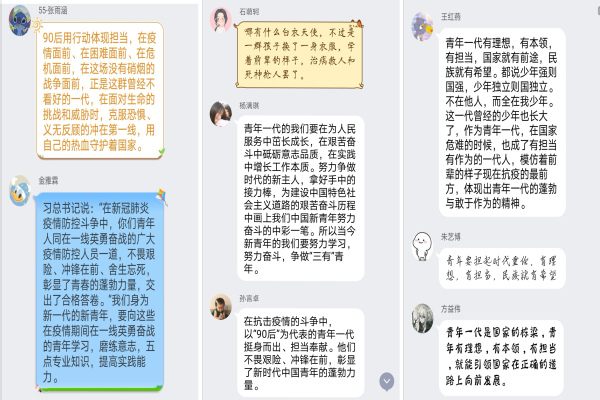 青春由磨砺而出彩,人生因奋斗而升华。“党有号召、团有行动”,在疫情防控这堂生动的团课中,广大材化学子读懂了中国特色社会主义制度,增强了制度自信,在复学关键期,以身作则,发挥好青年团员的模范带头作用,全力引导团员的思想建设,努力学习科学文化知识,让青春在党和人民最需要的地方绽放绚丽之花。
