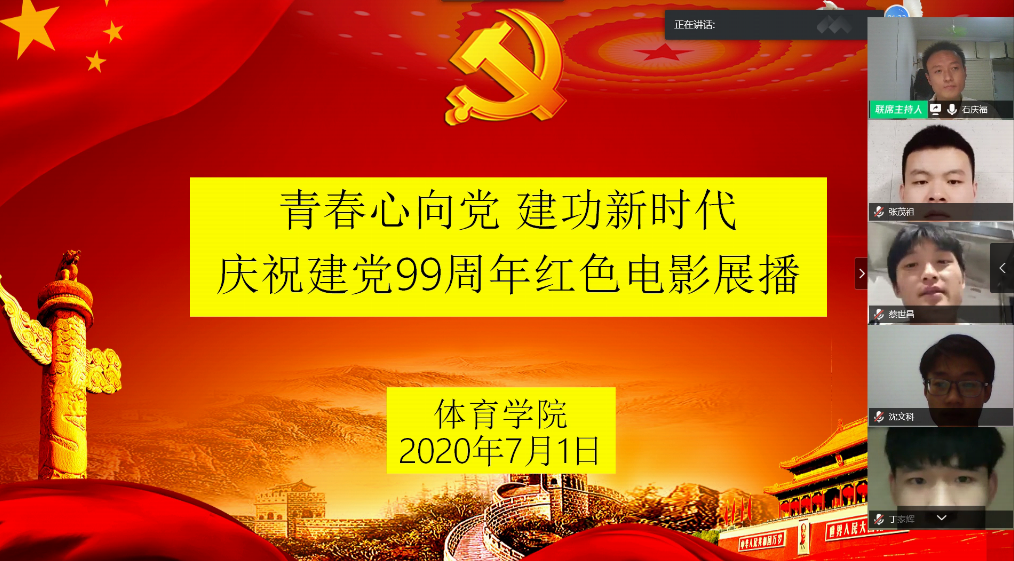 为庆祝中国共产党成立99周年,回顾党的光辉历程,缅怀革命先辈的丰功伟绩,7月1日,体育学院在线上开展了“青春心向党 建功新时代”庆祝建党99周年红色电影展播活动,体育学院全体学生参加了此次活动。