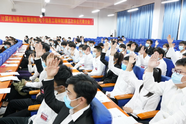 与会代表审议通过了《郑州轻工业大学计算机与通信工程学院(电子信息工程学院)学生代表大会选举方案》(草案)、参加校学生代表大会代表名单,并选举产生了新一届郑州轻工业大学计算机与通信工程学院(电子信息工程学院)第五届学生会、第十二届研究生会主席团。