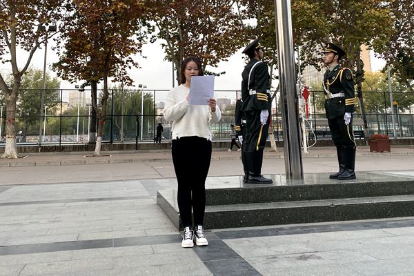 电气工程及其自动化20级1班刘书菡同学做国旗下演讲,对我党历史进行了回顾,并对在场的青年学生进行号召:“作为新时代青年的我们,要牢记历史,牢记时代赋予我们的使命,让中华民族伟大复兴的中国梦在我们这一代青年的接力奋斗中变为美好的现实!”