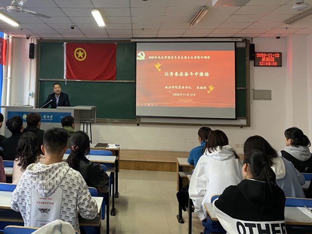 为进一步加强理想信念教育,提升团学干部的综合素质,根据本学期团课培训安排,政法学院于11月12日下午在二教楼802开展“让青春在奋斗中激扬”主题团课培训,政法学院党委书记宋德涛主讲,全体团学干部参加了此次培训。