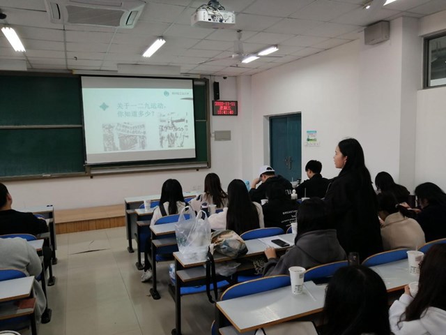 政法学院各团支部围绕“纪念一二·九,谱写新篇章”这一主题,通过主题教育、主题班会、观看红色电影、主题朗诵等方式,开展了一系列形式多样、主题鲜明的团日活动。其中法学2001团支部通过红色电影展播与讨论分享,回顾了北平学生奋不顾身的救国运动,激励同学们高举爱国主义旗帜,传承革命精神、担当青春使命,增强民族自信、立志成才报国。公共事业管理1902团支部以故事分享的形式展开,“用身边人讲身边事,用身边事育身边人”的环节成为本次活动的亮点,活动的开展引发了同学们对“一二·九”运动的思考,唤起了同学们的爱国主义情怀,切实加强了同学们的社会责任感和历史使命感。社会工作2001团支书结合PPT向同学们介绍了“一二·九”运动的背景、目的以及历史意义,同学们围绕“当代大学生如何在实际生活中践行一二·九精神”这一主题展开热烈讨论,同学们踊跃发言、各抒己见,活动现场气氛十分活跃,充分表达了同学们传承革命精神、为建设社会主义强国不懈奋斗的决心。