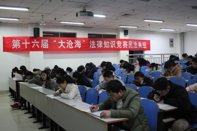 为弘扬社会主义法治精神,树立社会主义法治理念,帮助广大学生树立崇法、懂法、学法意识,11月2日—11月27日,政法学院开展了第十六届“大沧海”法律知识竞赛,全校2600余名学生参加了本次活动。