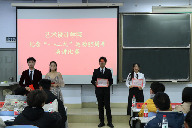 为纪念一二·九运动85周年,缅怀革命烈士,弘扬爱国主义精神,2020年11月28日,艺术设计学院在教三楼102举办纪念一二・九运动85周年主题演讲比赛,学院100余名本硕学生参与了活动。