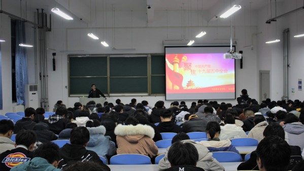 团课上,闫老师概述了党的十九届五中全会概况、回顾了“十三五”经济社会发展成就以及阐述了五中全会如何书写大变局下的“中国故事”,讲解了十九届五中全会前瞩——如何做好十四五规划六大要求指明发展方向和推动十四五时期经济社会发展的五个必须。他指出,“全会是今后一个时期我国发展的指导方针、目标任务、战略措施、是开启全面建设社会主义现代化国家的新征程、向第二个百年奋斗目标的纲领性文件,是今后五年乃至更长时期我国经济社会发展的行动指南”。最后,闫老师以习近平主席的讲话鼓励广大学子把时代责任落实落细,落实到日常学习,生活中,要认真学习贯彻党的十九届五中全会精神,真正让全会精神内化于心,外化于行,号召广大青年学生要在新时代为国奋斗中成就梦想,要有责任担当。