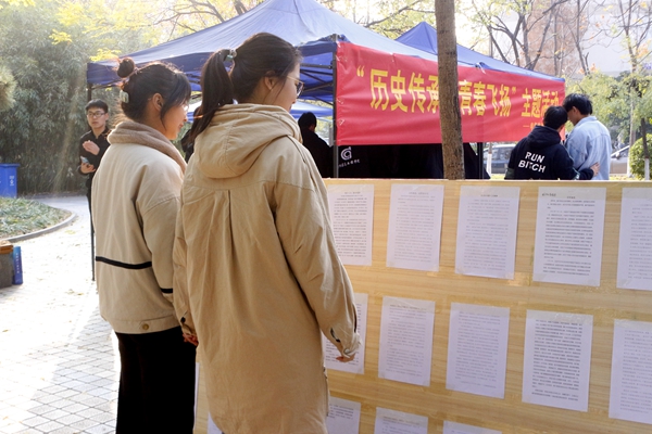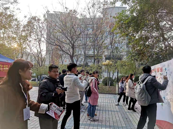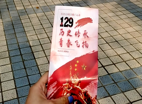 本次活动旨在使同学们深入学习贯彻习近平总书记关于党史、新中国史、改革开放史、社会主义发展史及新冠肺炎疫情防控工作的重要讲话和指示精神,向同学们传递一二·九爱国精神,传承先辈们勇于担当、无私奉献的精神,展现当代大学生积极向上、与祖国发展事业共奋进的责任与担当。活动中,工作人员向前来参加活动的同学们分发一二·九宣传页,结合““四史””为同学们讲解一二·九的历史背景、运动过程、主要影响等,并引导同学们到一二·九优秀征文展的展板前欣赏优秀征文,通过这些优秀征文,同学们对一二·九精神有了更深刻的理解和认识。