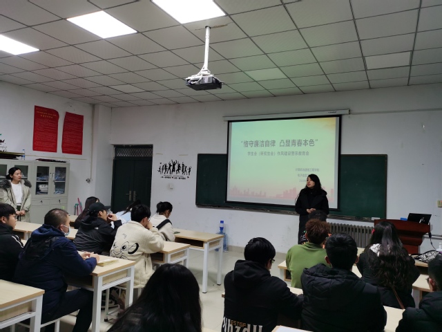 会上,学院学生会执行主席王建泽领学了《关于推动高校学生会(研究生会)深化改革的若干意见》、《关于学联学生会工作人员改进作风服务同学的若干规定》和《关于落实共青团和学联对高校学生会(研究生会)指导管理责任的若干规定(试行)》等文件精神,通过近年来在个别学校学生会组织中出现的典型负面案例为素材,号召全体学生会工作人员要时刻自警自省。院团委书记孟牒老师作总结发言,她向我院学生会全体学生骨干提出要求:一是要找准定位,牢记“从同学中来,到同学中去”的服务宗旨;二是要明确职能,做好联系广大师生之间的桥梁和纽带;三是要时刻自警,牢记学生身份,恪守工作本分,起到模范带头作用。