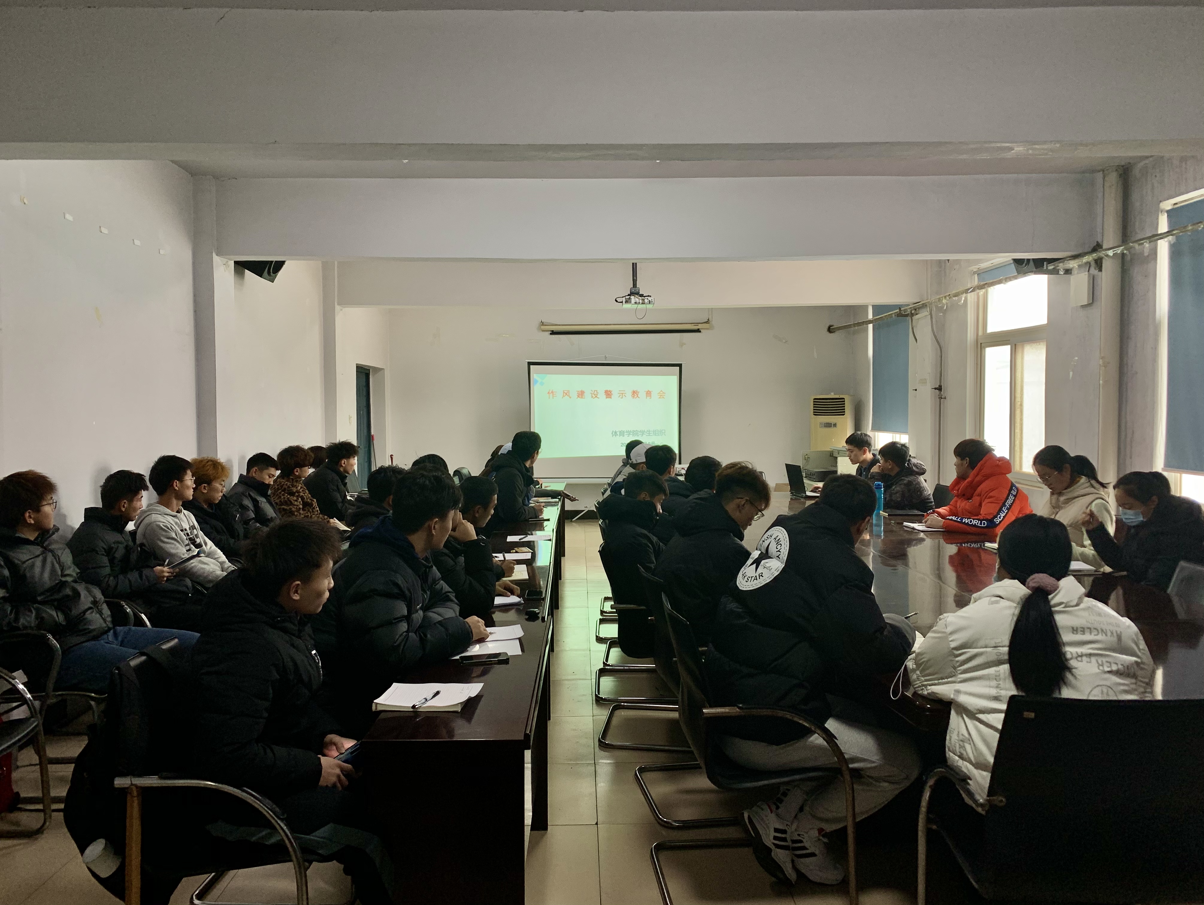 为全面加强学生会作风建设,提高学生会工作人员责任担当意识,12月8日,体育学院学生会在东风校区体育馆三楼会议室召开了作风建设警示教育会,全体学生会工作人员和部分学生代表参加了此次会议,会议由体育学院学生会主席团成员韦战旗主持。