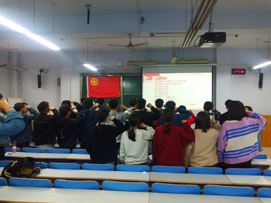 “我志愿加入中国共产党主义青年团,坚决拥护中国共产党的领导,遵守团的章程,执行团的决议,履行团员义务……”在鲜红的团旗下,在场全体团员庄严举起右拳,温誓词、忆初心,一字一句,铿锵有力,催人奋进。