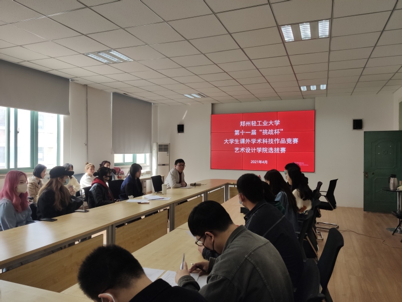 为遴选优秀课外学术科技作品,备战“挑战杯”校赛,2021年4月13日上午,艺术设计学院在东四楼307会议室举行第十一届“挑战杯”大学生学术科技作品竞赛院级选拔赛。参加答辩环节的项目团队的主要成员参与了本次比赛。比赛由学院团委书记孙丰老师主持。