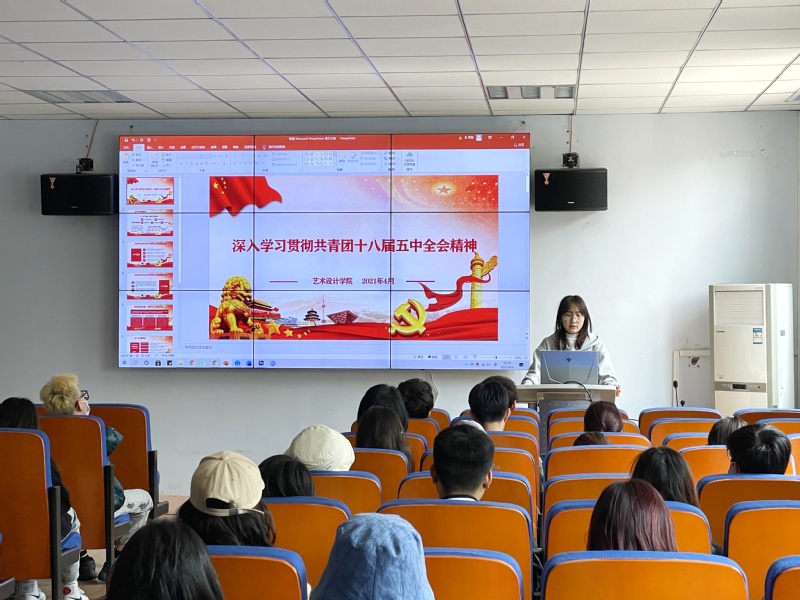 为持续深入学习贯彻习近平总书记关于青年工作的重要思想,准确把握共青团工作的历史方位和时代方向, 2021年4月12日艺术设计学院组织开展 “学习贯彻共青团十八届五中全会精神”主题团日活动,学院本硕生共计80余名团干代表参加了活动。