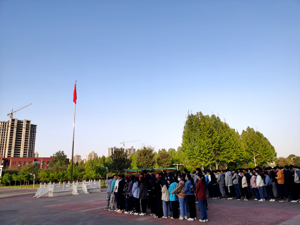 2021年4月19日,电气信息工程学院在禹州实习实训基地举行“学党史,我与祖国共奋进”主题升国旗仪式,教师代表及各学院禹州实习学生参加升旗仪式。
