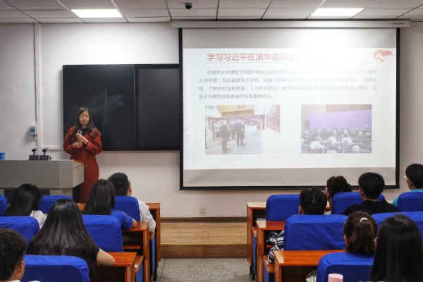 李燕老师以“弘扬五四精神,做时代新青年”为题,从历史背景、深刻意义、五四精神的内涵及时代价值四个方面,带领同学们重温了五四运动那段波澜壮阔的历史,阐述了青年学子应有的历史责任与时代担当。同时,李老师带领大家学习了习近平总书记视察清华大学重要讲话精神,希望大家牢记习近平总书记的要求,继承和发扬五四精神,勇担新时代赋予青年的历史使命,自觉践行爱国爱民、锤炼品德、勇于创新、实学实干的实践要求,立大志、明大德、成大才、担大任,努力成为堪当民族复兴重任的时代新人。