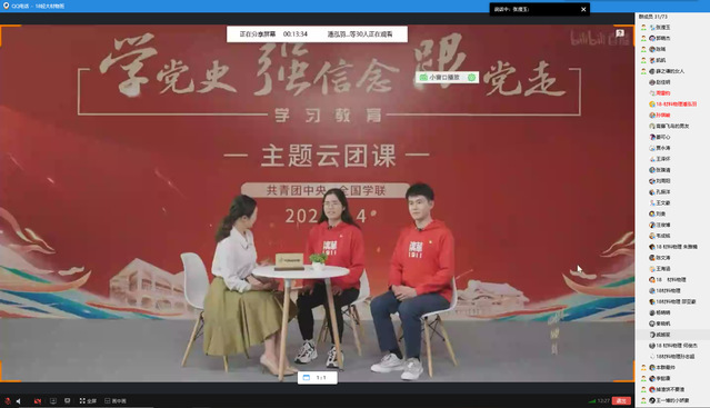 为宣传弘扬五四精神,深入开展党史学习教育。5月4日,物理与电子工程学院团支部为单位组织全体学生线上观看“学党史 强信念 跟党走”主题云团课。