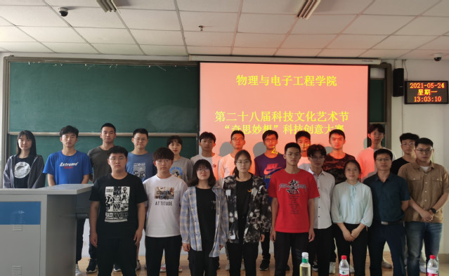为培养学生的创新精神,增强学生的动手实践能力,提高学生的科学素养。5月24日中午,由校团委主办,物理与电子工程学院承办的第二十八届科技文化艺术节“奇思妙想”科技创意大赛在二教704教室举行。