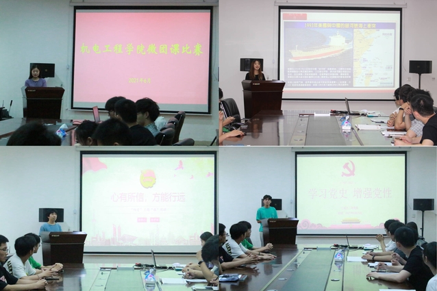 为庆祝建党100周年,深入推进党史学习教育,引领广大团员青年坚定不移知党史、感党恩、跟党走,从党的光辉历史中汲取砥砺奋进的精神力量,机电工程学院于6月26日中午,在西三楼215会议室举行“峥嵘百年路,青春展宏图”微团课大赛,学院各年级学生骨干参加了本次活动。