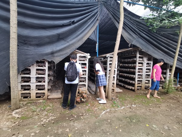 实践队员们的第二站来到淅川县金河镇食用菌种植大户食用菌生产基地考察学习。基地的空气较为潮湿,光线照射强度较低,非常适宜食用菌的生长。据了解,该种植大户香菇种植在10万袋以上,增产增收致富的同时,也有力地吸纳了该村的剩余劳动力,为乡亲们增加了收入,同时食用菌栽培肥料是优质的有机肥,其使用将可直接替代化肥,改良土壤。实践队员与农户交流,了解其种植技术等的需求,希望通过实践创新为该镇的产业振兴贡献技术和力量。